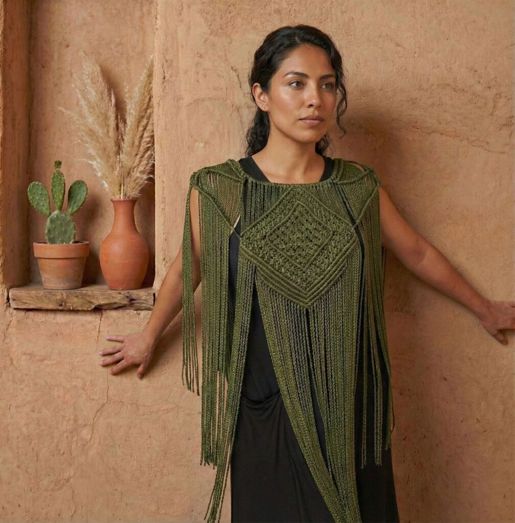 Nuestras pecheras son y serán el Icono de Musgo. Tejidas 100% a mano con cuerda de algodón y nylon.
